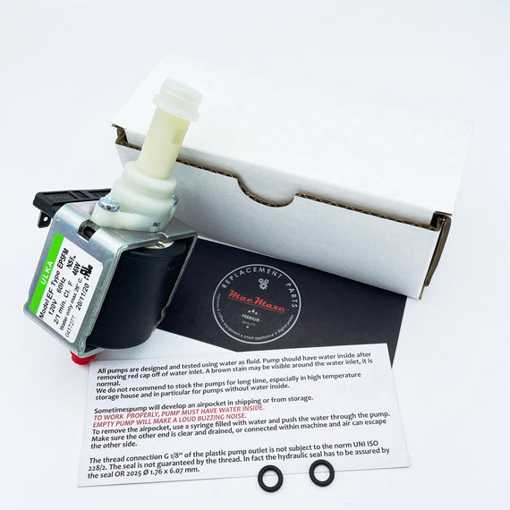 MacMaxe ULKA Model E Type EP5FM - Replacement Pump Compatible with Breville Espresso Machine - Solenoid Vibratory Water Pump with 2 O-Ring Seals - 15 Bar Max Pressure, 2/1 Min. On/Off, 120V, 60Hz, 46W